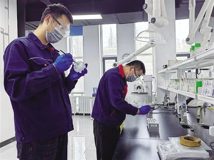 走進(jìn)皓天科技研發(fā)中心,儼然是走進(jìn)了一個(gè)科學(xué)院所的實(shí)驗(yàn)室。在一樓合成實(shí)驗(yàn)室里,戴著防護(hù)鏡的科研人員手里不停晃動(dòng)著燒瓶,認(rèn)真觀察正在發(fā)生的化學(xué)反應(yīng),旁邊的幾臺(tái)實(shí)驗(yàn)設(shè)備運(yùn)轉(zhuǎn)如常,進(jìn)行著分離、濃縮等操作,幾位科研人員坐在電腦前及時(shí)記錄、分析試驗(yàn)中的各項(xiàng)數(shù)據(jù)。就是在這些實(shí)驗(yàn)室里,累計(jì)完成100多個(gè)原料藥、300多個(gè)高級(jí)中間體的工藝研發(fā)。