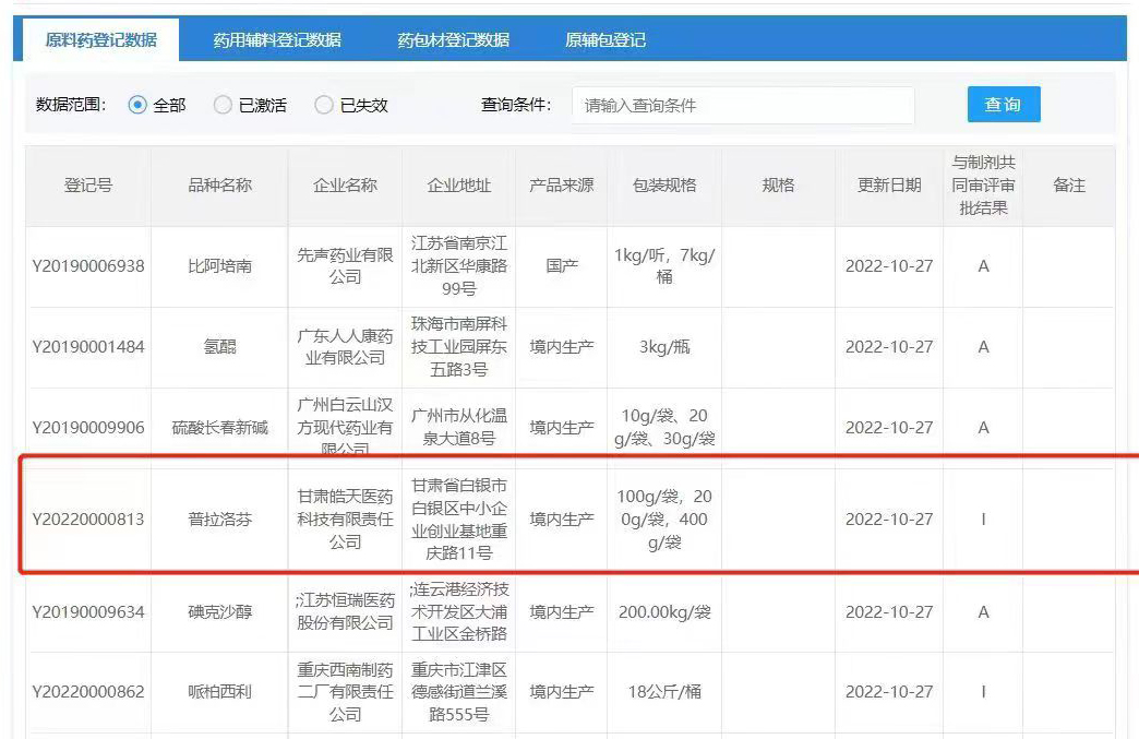 10月27日,甘肅皓天醫(yī)藥科技有限責任公司普拉洛芬原料藥完成國家藥品監(jiān)督管理局藥品審評中心(CDE)登記備案,這是皓天醫(yī)藥第一個原料藥品種備案,標志著皓天醫(yī)藥正式進入原料藥時代,后續(xù)皓天醫(yī)藥將有近三十個品種陸續(xù)向CDE中心提交備案。